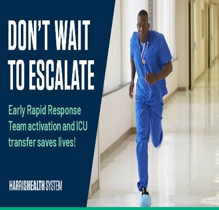 Don’t Wait To EscalateHarris Health is raising awareness around the importance of Rapid Response Team activation and ICU transfer as a critical safety initiative. The content from this